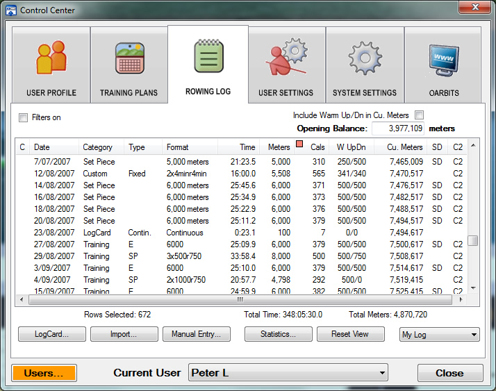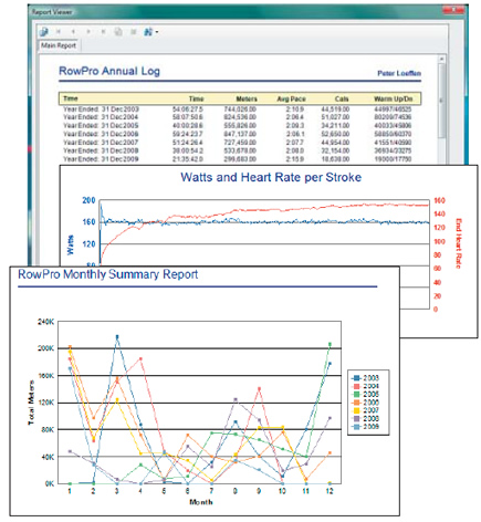 • Statistical reports that summarize your rowing weekly, monthly and annually.